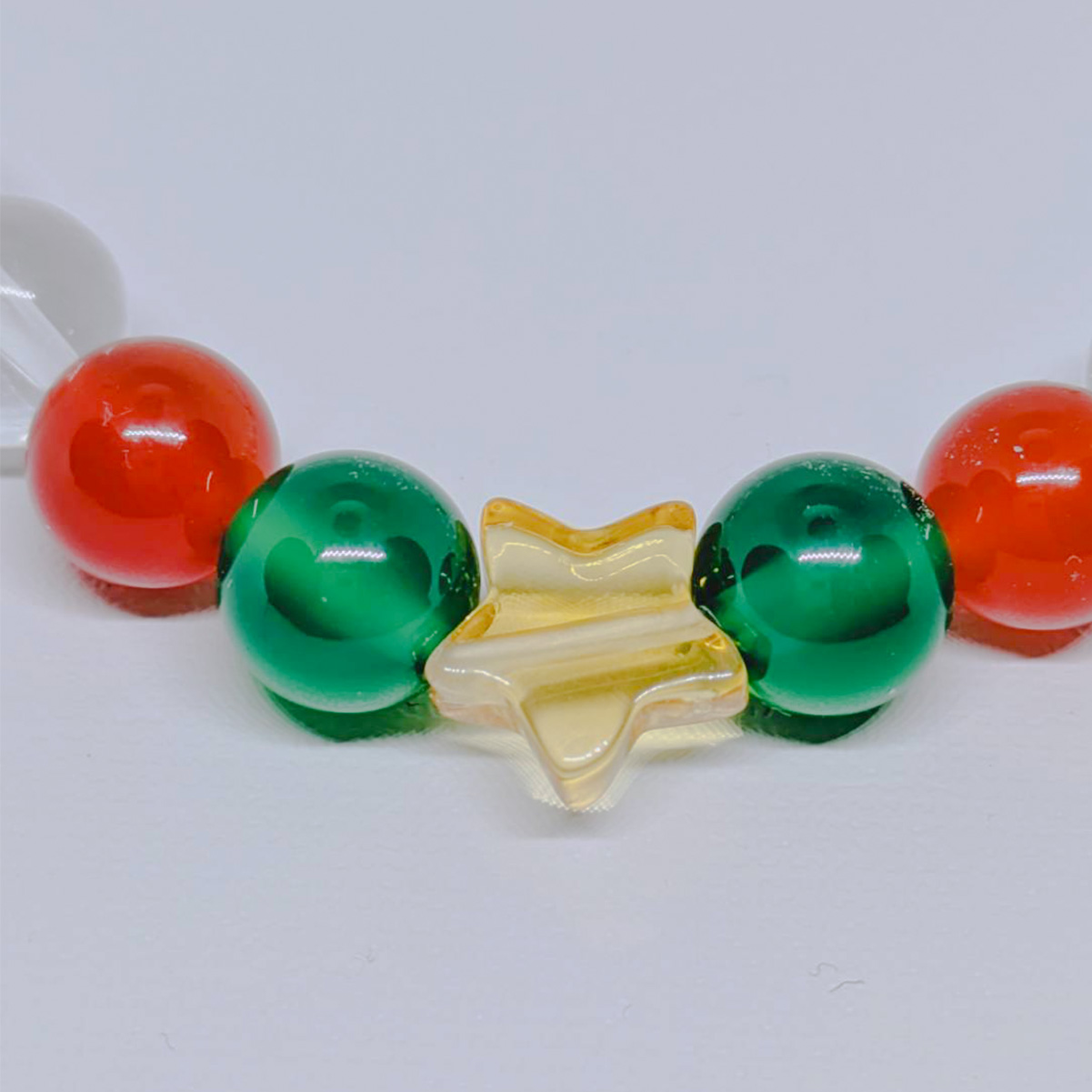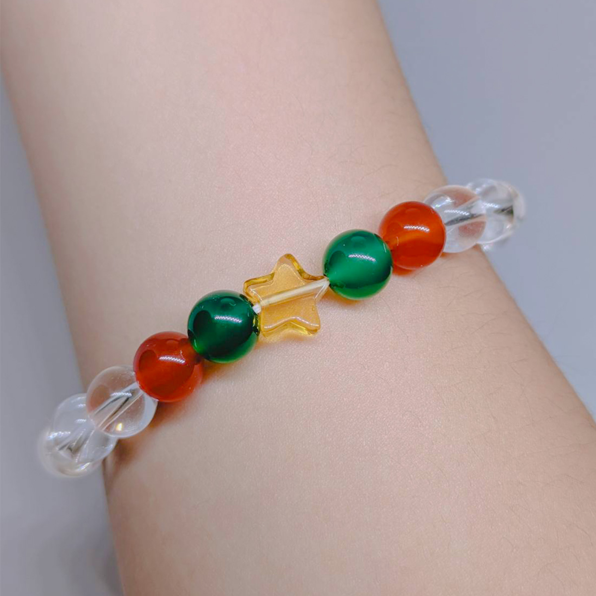 クリスマスツリーをイメージしたブレス。かわいい星型水晶がアクセント!クリスマスシーズンのちょっとしたお出かけにもぴったりです。